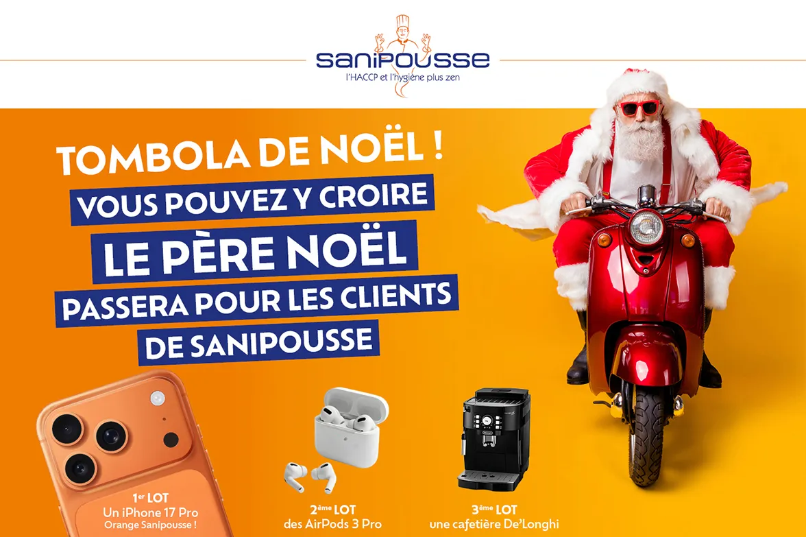 L’esprit de Noël est déjà là, et chez Sanipousse, votre partenaire expert en HACCP et Hygiène en cuisine professionnelle, nous avons décidé de vous gâter !